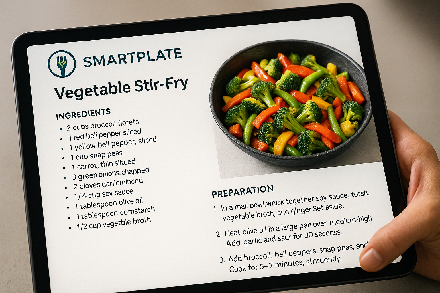Every SmartPlate meal comes with a beautifully designed recipe card featuring a photo of the dish, a tailored ingredient list, and step-by-step instructions that match your cooking skill level and dietary needs. It’s everything you need to cook with clarity and confidence.
